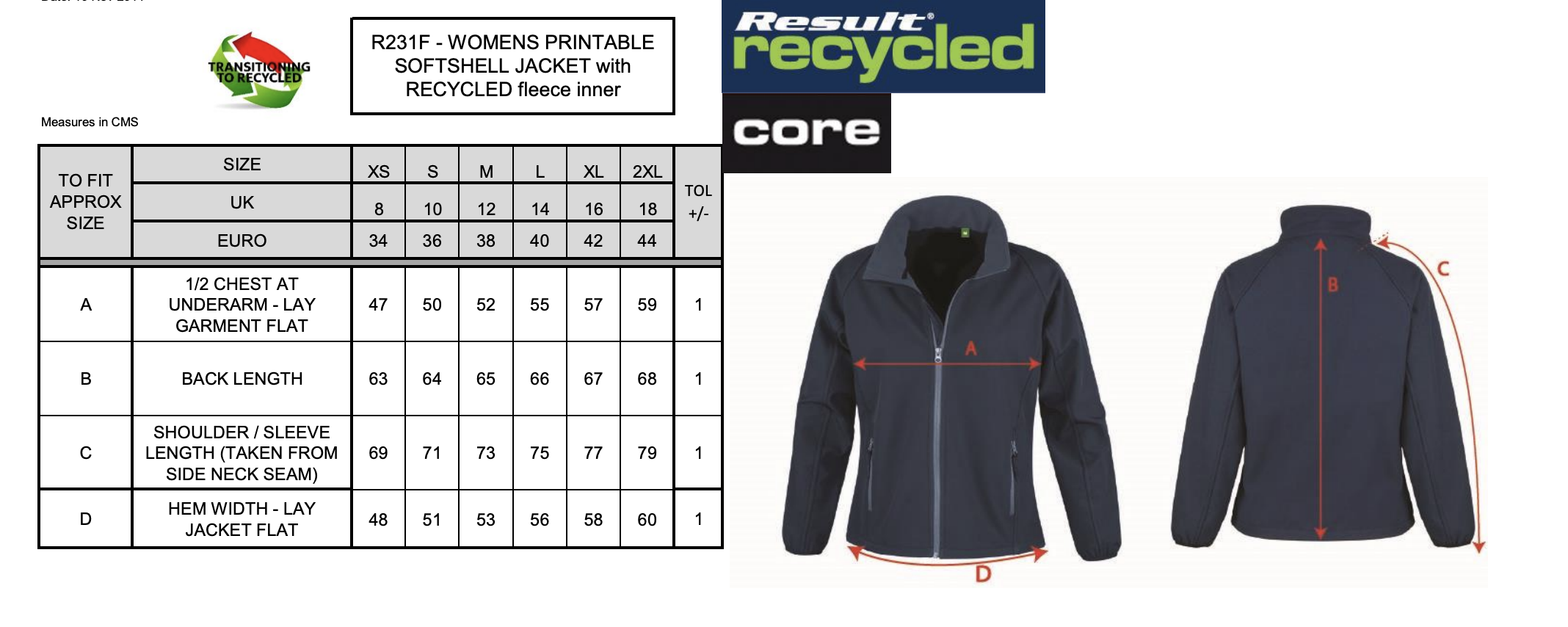 Decorative top stitch. Full front zip. Zip closing front pockets. Chin guard. Slim fitted waist. Elastane-free, crimped yarn stretch easy to print fabric. Microfleece inner provides extra warmth. Neutral label. Elasticised bound cuff.Decoration Guidelines:Decorating methods: Embroidery, Screen print & Transfer print. Decorators access point: Washing Instructions 40 degrees, do not bleach, do not tumble dry, do not iron, do not dry clean.